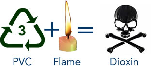 Among the most serious dangers that PVC poses to humans and the environment is when PVC is burned. The widespread use of PVC in modern homes - for vinyl flooring, vinyl wallpapers, shower curtains, window frames, electrical equipment including cable and wire insulation, and Venetian blinds to name but a few items - ensures that house and building fires will probably involve PVC products. If this happens dangerous dioxin will be generated.